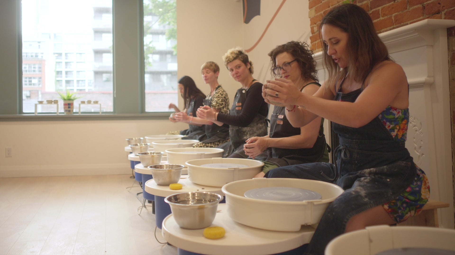 Our spacious downtown ceramics studio welcomes gatherings of all sizes — from intimate teams of 5 to lively groups of up to 75.