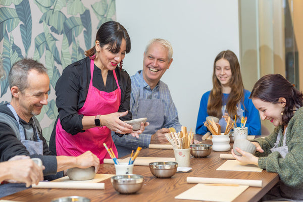 Perfect for larger groups, these workshops blend wheel throwing and hand building, providing a comprehensive experience of the ceramic process while creating stunning keepsakes.